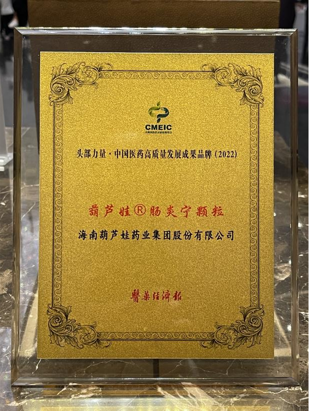 在本次发布会上,公司重点产品贝斯特牌肠炎宁颗粒同时荣膺“头部力量·中国医药高质量发展成果品牌(2022)”。贝斯特牌肠炎宁颗粒(2g),传承经典名方,临床广泛用于成人及儿童急慢性胃肠炎、腹泻等疾病的治疗,由于其杰出的临床价值,被纳入国家中医药管理局相关专家项目组制定的《中成药治疗小儿腹泻病临床应用指南》。